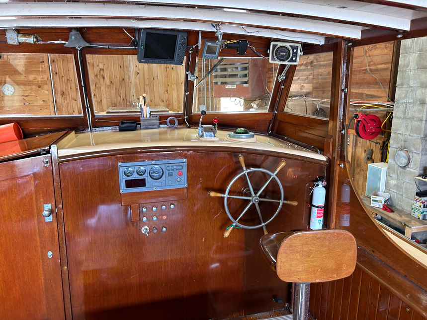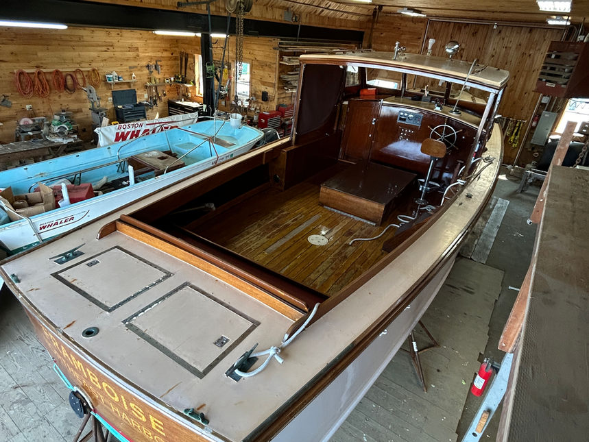 FRAMBOISE is a 36' lobster yacht, built in 1952 by Robert Rich. She’s currently undergoing a full restoration, including new deck beams, floor timbers, steam-bent frames, bulkheads, Coosa board on the weather and cockpit decks, systems/electrical, fresh paint and varnish, and much more. This is a major project, and we’re honored to breathe new life into this classic wooden boat.